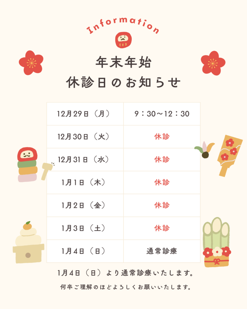 年末年始の休診日のお知らせ